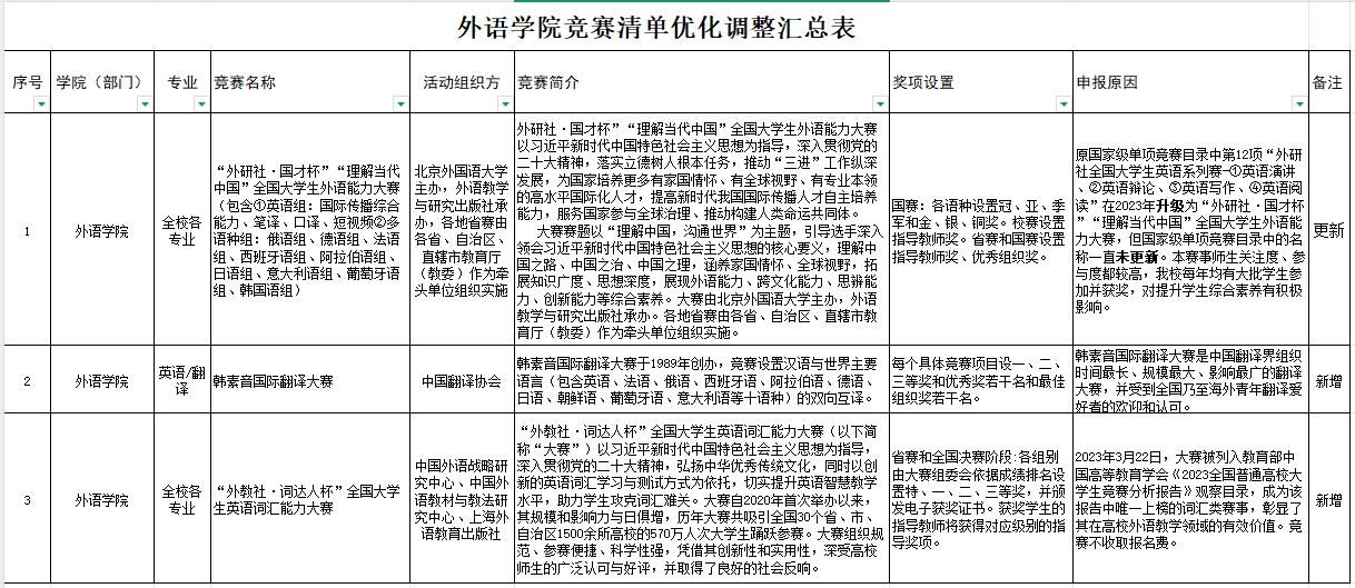 根据教务处《关于优化调整河南工业大学推荐优秀应届本科毕业生免试攻读硕士学位研究生工作认定国家级综合及单项竞赛清单的通知》要求,学院推免工作小组经广泛征求意见和综合研判,拟向教务处申报(含更新)以下三项竞赛,现予公示。